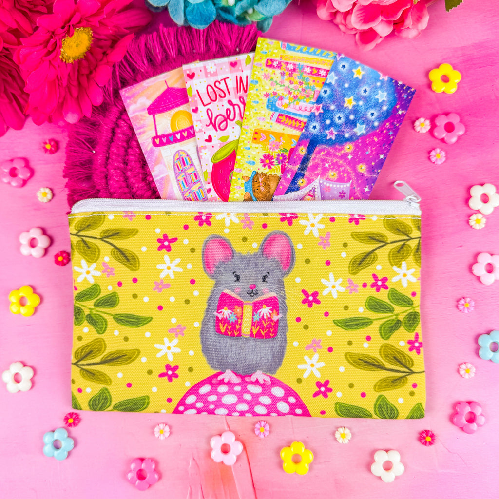 Reading Mouse in the Meadow Bookmark/Accessory Pouch