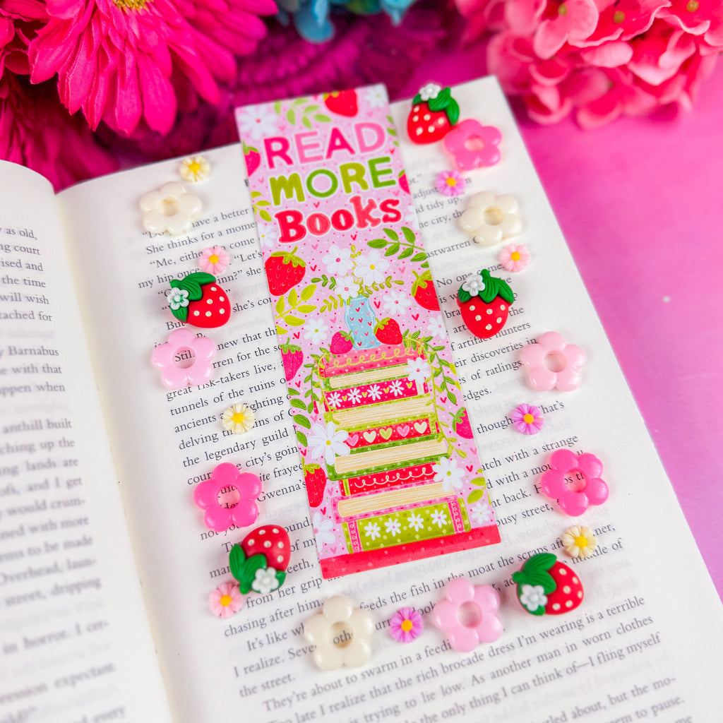 Read More Books Strawberry Book Stack Bookmark