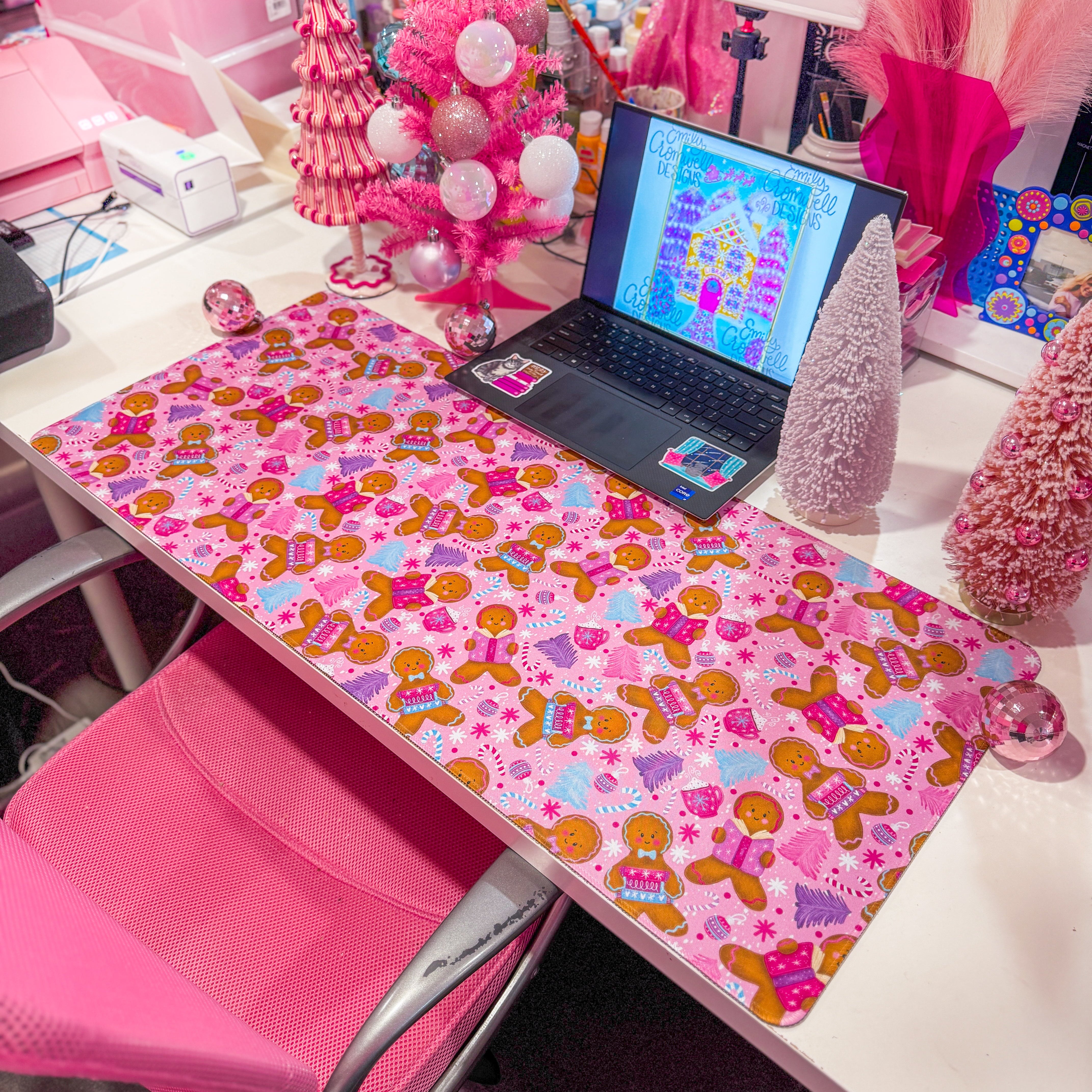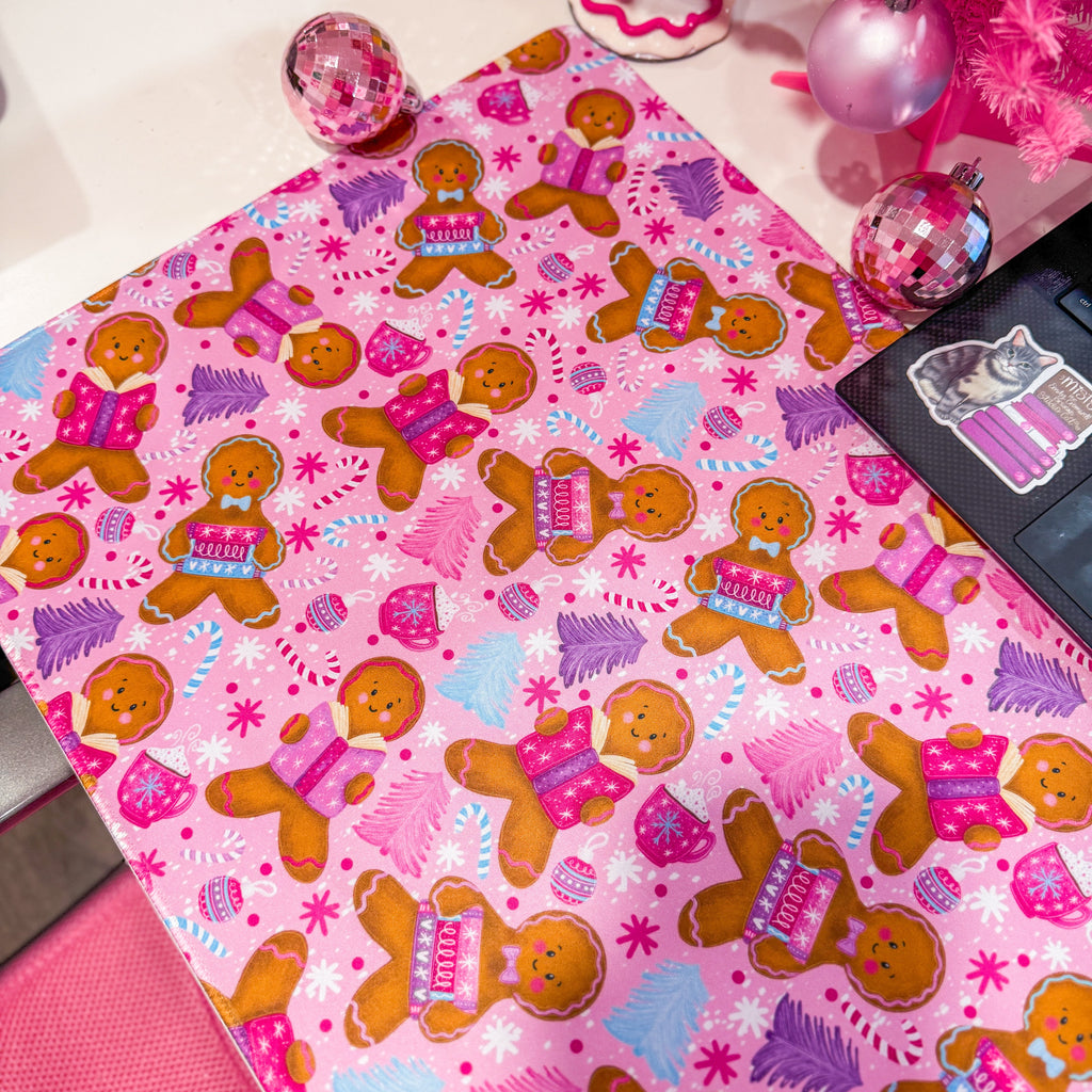 Transform your workspace into a cozy reading nook with this adorable gingerbread themed desk mat. Perfect for book lovers and creative minds, it adds a sprinkle of warmth and whimsy to any desk setup. The charming gingerbread design brings festive cheer year-round, while providing a protective surface for your workspace. Whether you're jotting down notes, sketching ideas, or settling in with your favorite novel, this mat keeps your desk organized and your spirit merry. A sweet way to make your reading corner feel extra special