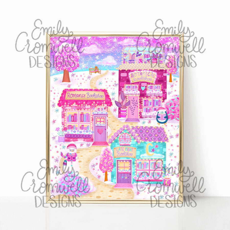 Winter Romance Bookshop at Bookshop Avenue Vinyl Sticker