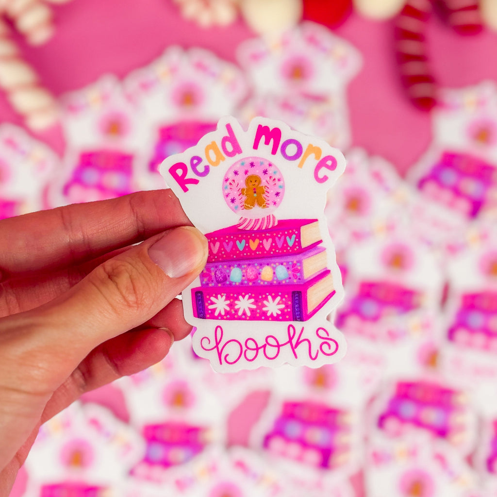 Read More Books Snow Globe Book Stack Vinyl Sticker