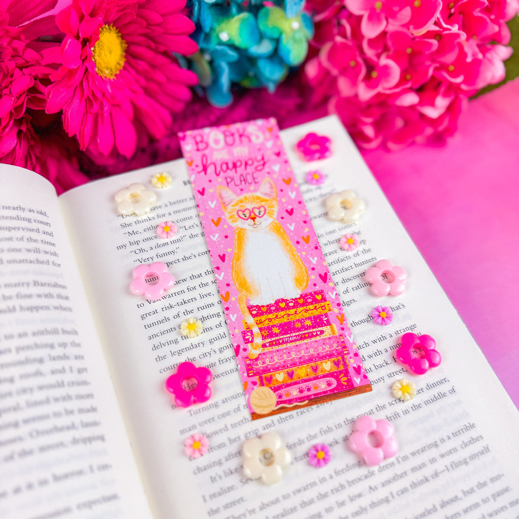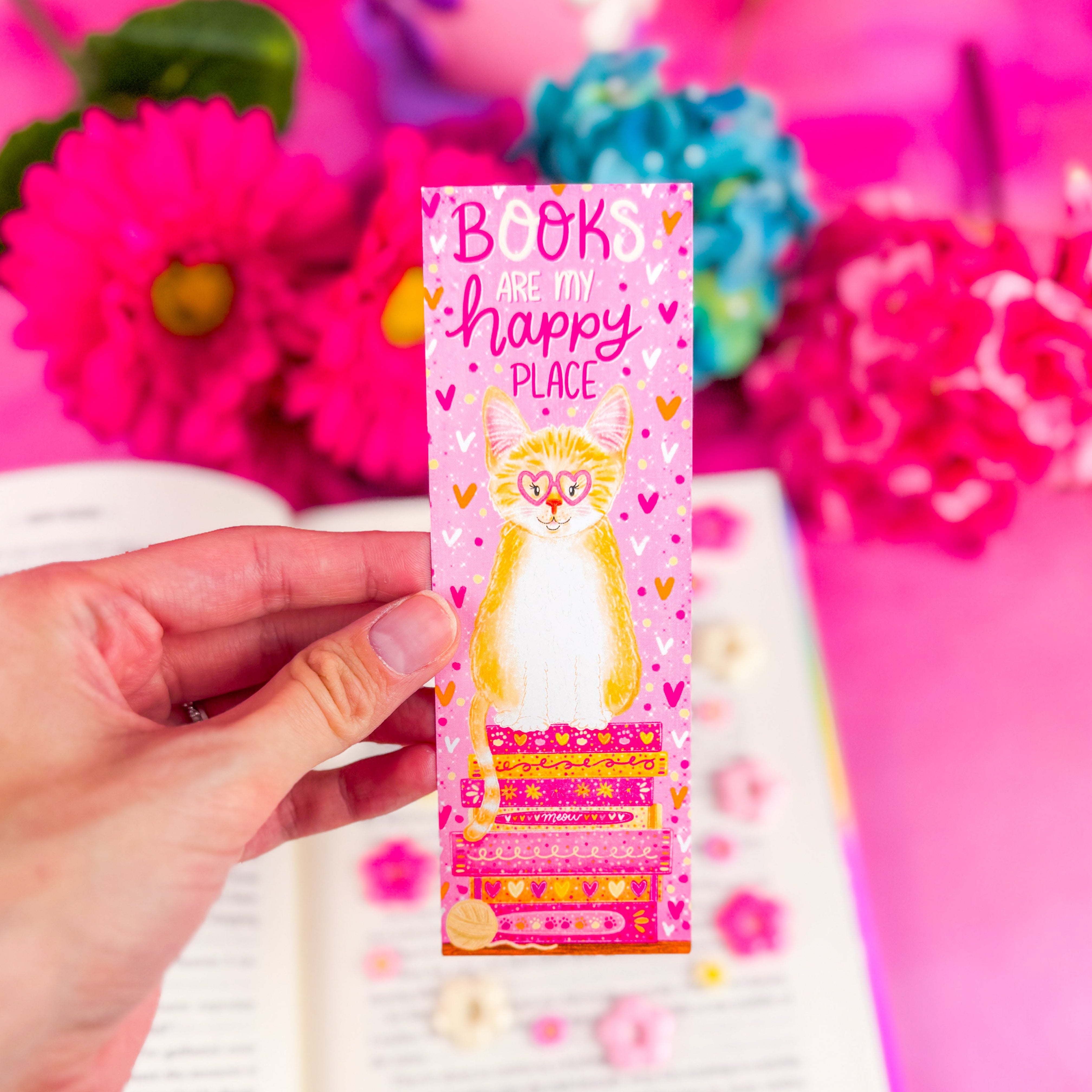 Books Are My Happy Place Kitty Book Stack Bookmark - Matte is backordered and will ship as soon as it is back in stock.