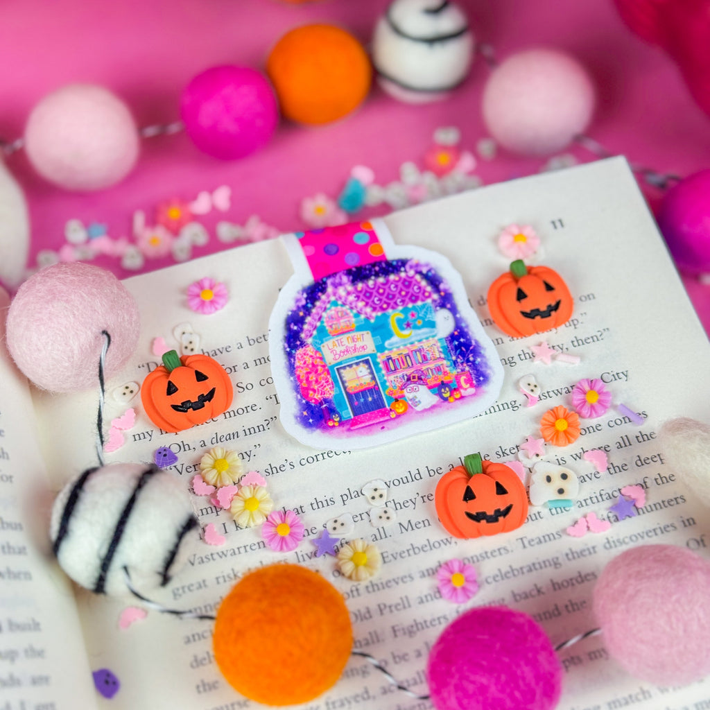 Snuggle up with a spooky read and the Halloween Late Night Bookshop at Bookshop Avenue Magnetic Bookmark! This dreamy clibookmark captures the cozy vibe of a nighttime bookshop on Halloween, keeping your pages secure while adding a fun, festive touch. Perfect for night owls and Halloween fans eager to dive into their favorite stories.
