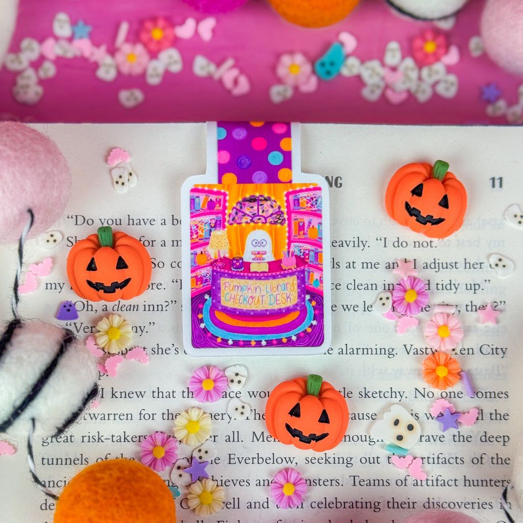 Pumpkin Library Checkout Desk Magnetic Bookmark