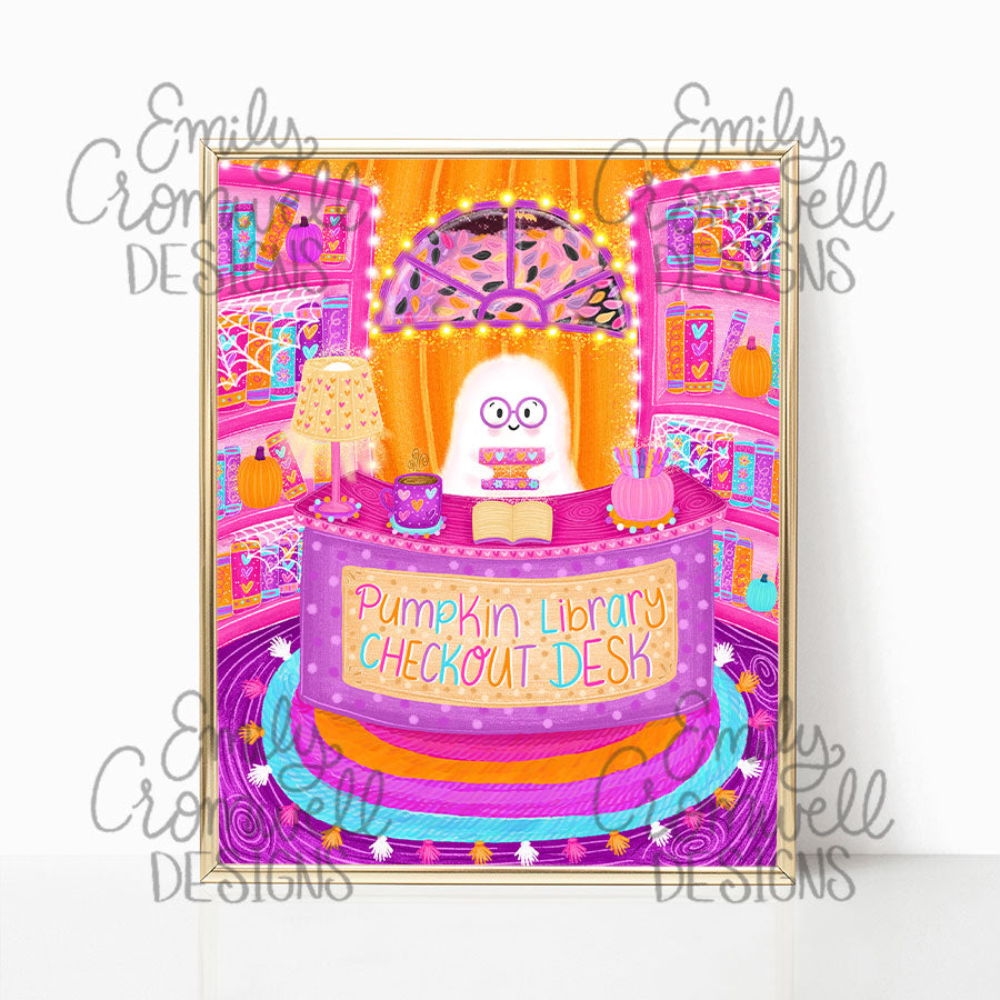Pumpkin Library Checkout Desk Art Print