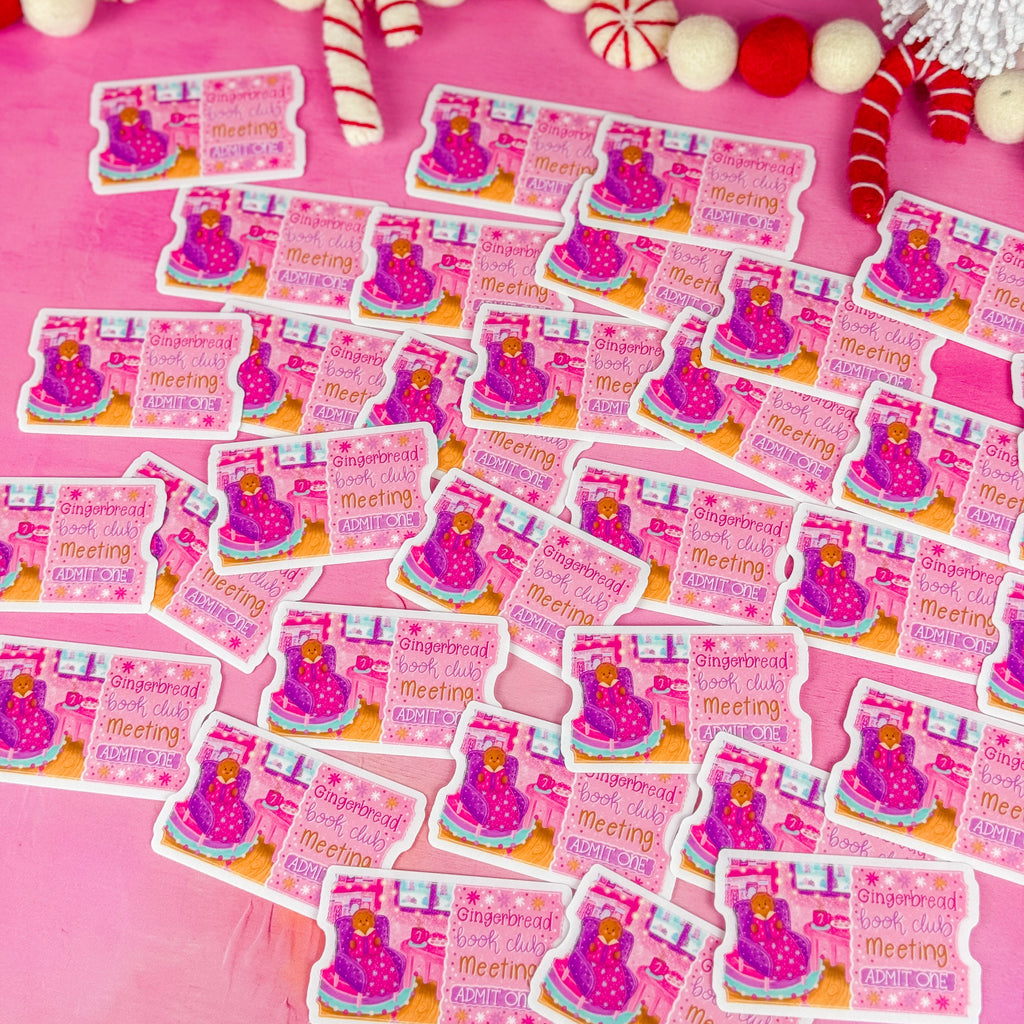 Gain VIP access to the sweetest book club experience with this adorable clear vinyl sticker styled as a gingerbread book club admission ticket! Whether you're a devoted book club member or dreaming of cozy literary gatherings, this design brings festive fun to your everyday essentials. Apply it to your laptop, water bottle, journal, or anywhere you want to celebrate your love of books and seasonal cheer. The transparent backing lets your surface shine through while adding a touch of whimsy.