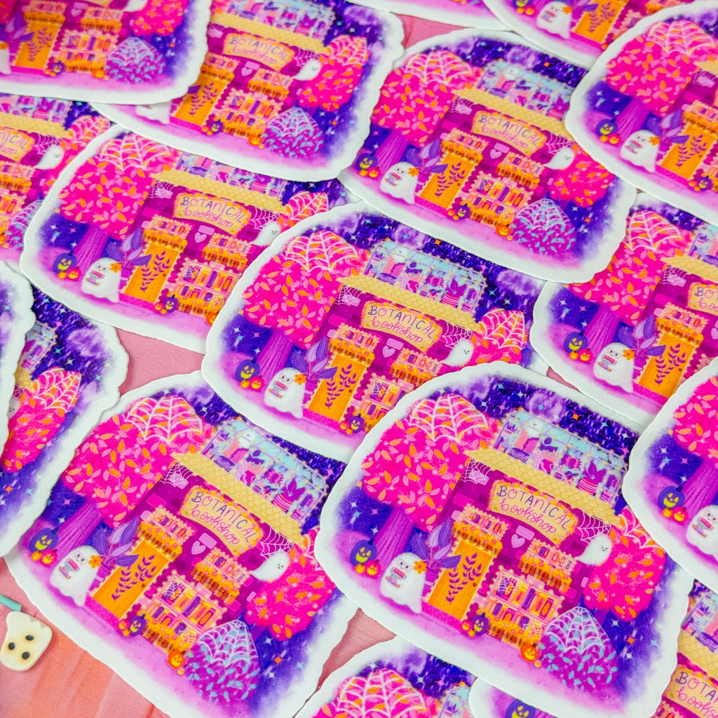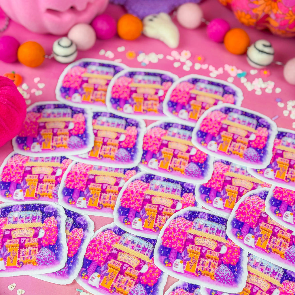 Celebrate the enchantment of Halloween with this cute Halloween Botanical Bookshop vinyl sticker. Featuring whimsical botanical elements and cozy bookshop charm, it’s perfect for adding a hint of Halloween magic to your laptop, journal, or favorite space. Durable and vibrant, this sticker brings a whimsical, botanical twist to your seasonal decor.