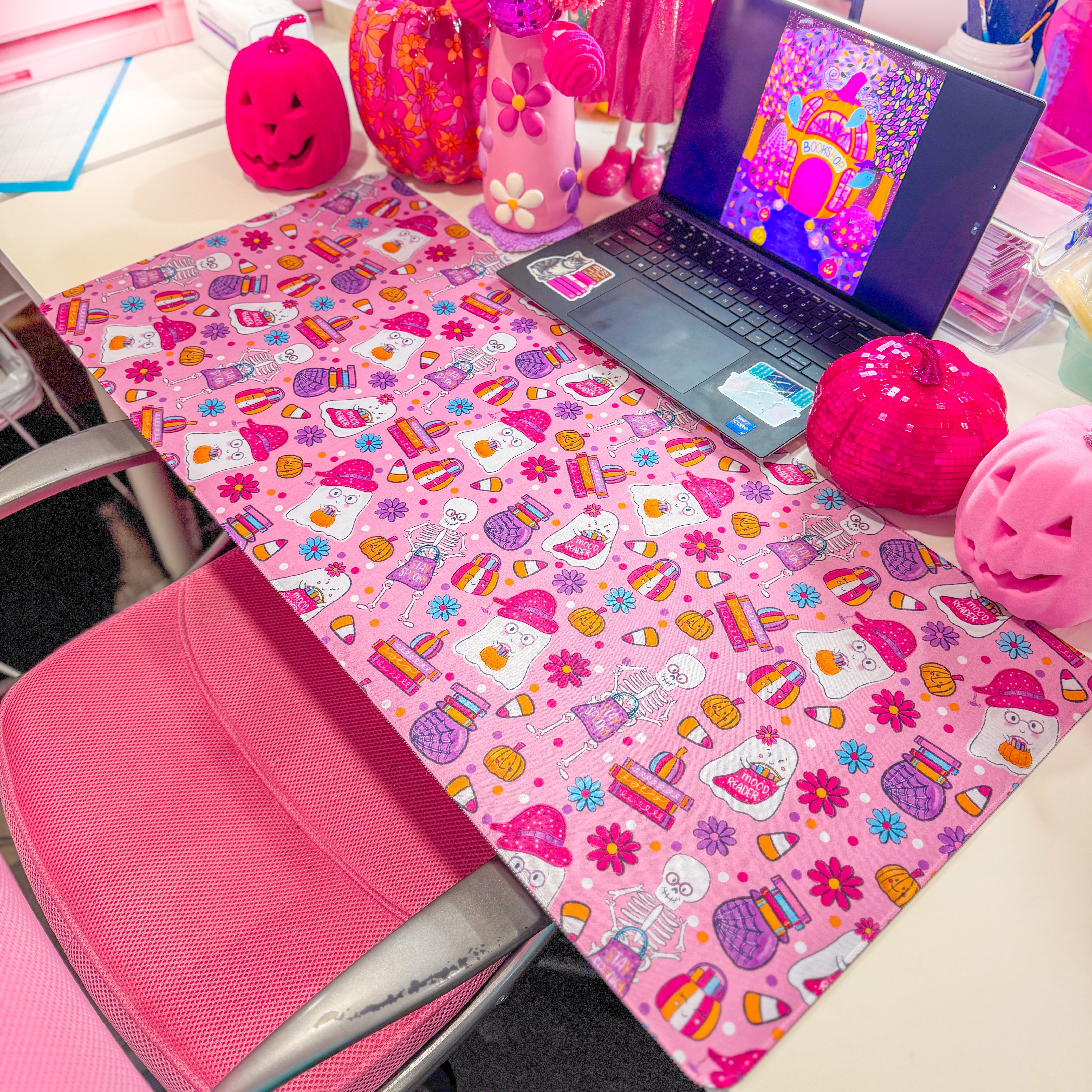Brighten your workspace with the Halloween Candy Desk Mat, featuring a fun, festive design that adds a spooky sweet touch to your desk. Made to protect your surface while bringing a whimsical vibe, this mat is perfect for the Halloween season or anyone who loves spooky season-inspired charm all year round. Easy to clean and comfortable for writing or mouse use, it’s a cute way to keep your desk both practical and festive.